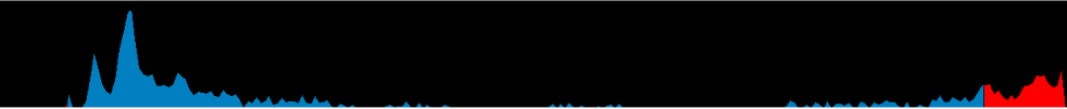 This looks MUCH better at the low intensities. We now see a pattern of luma values which matches the expectations for low intensity signals – showing a noisy distribution of luma values around a peak value. Yes, increasing the brightness has pushed the high intensity pixels beyond 235 – these values will be clipped to 235. But the low intensity data will be more accurate. And that is what I was aiming for in this case.